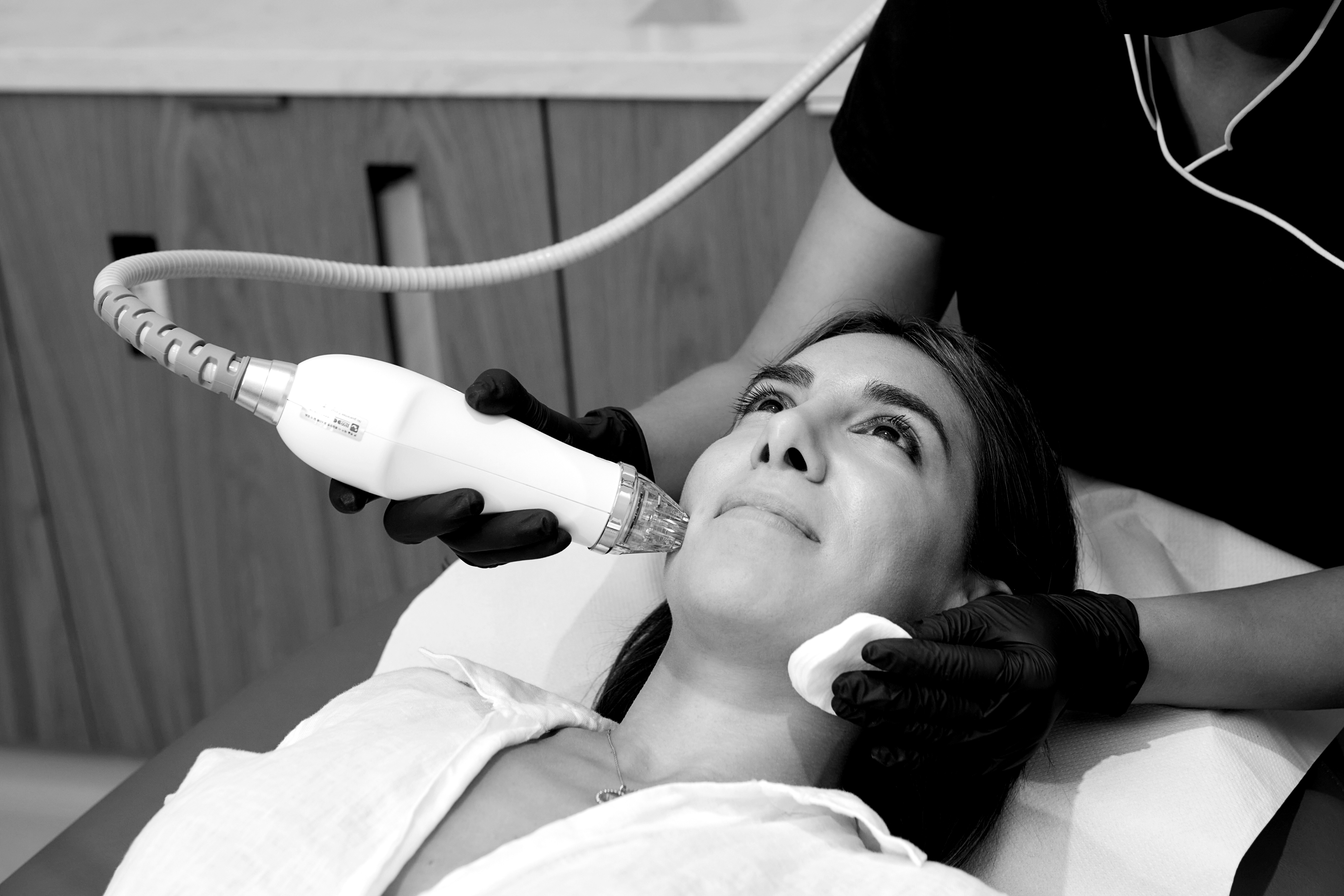 Toxin injections contain small doses of botulinum toxin type A, a neurotoxin that relaxes the muscles in the injection site. Botox is the brand name many use as a representation of this toxin family, yet many other brands exist with similar functionality. When administered into the treatment areas, they block the chemical signals from the nerves that induce muscle contraction, so they work best for reducing the appearance of wrinkles and fine lines. Finally, it is important to know that microneedling treatments will stimulate collagen production, resulting in plumping and smoothing the skin, yet they will not effectively reduce the appearance of dynamic wrinkles on the face as effectively as toxins will. At the same time, energy devices can also enhance and prolong the wrinkle-reducing, volumizing and lifting effects of injectables, so sometimes a combination of energy devices and injectables is required to best combat fine lines and wrinkles.